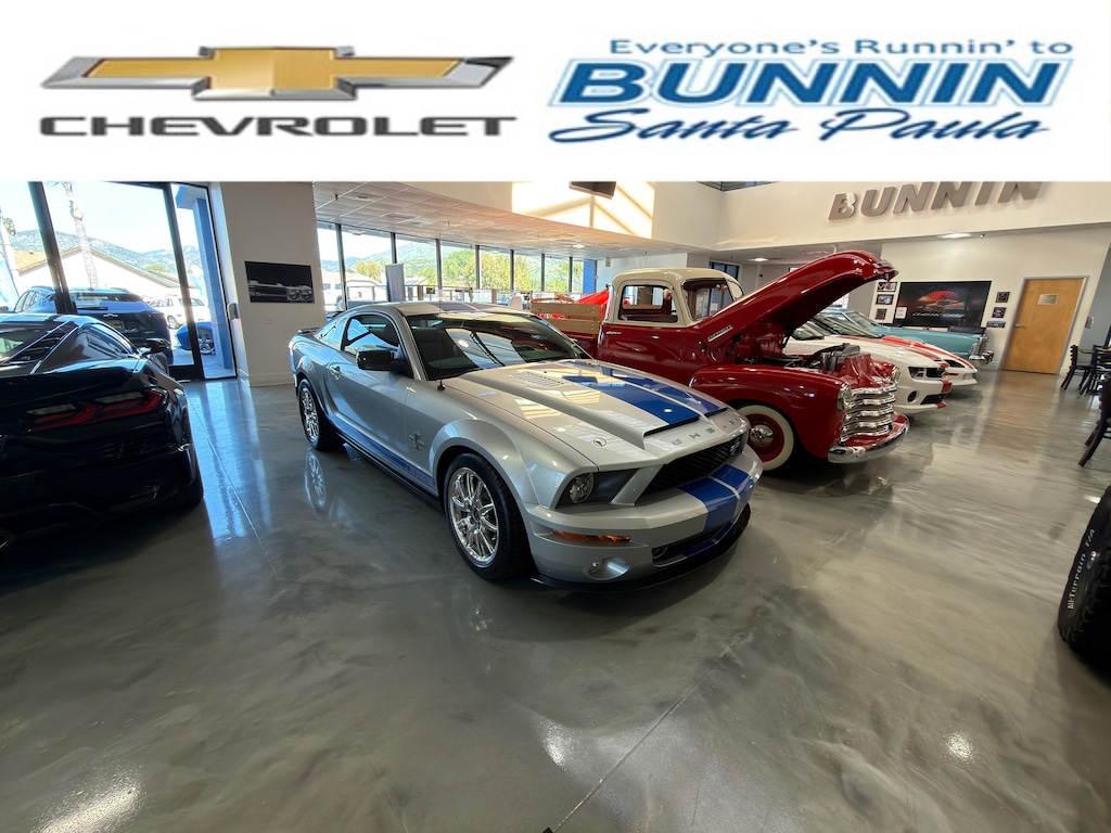 Finished in Brilliant Silver with blue Shelby racing stripes over Dark Charcoal leather, this GT500KR represents the pinnacle of factory-authorized Shelby performance during the modern muscle car revival. With its supercharged V8, track-focused suspension upgrades, and limited production status, the KR stands among the most collectible Mustangs of the 21st century.